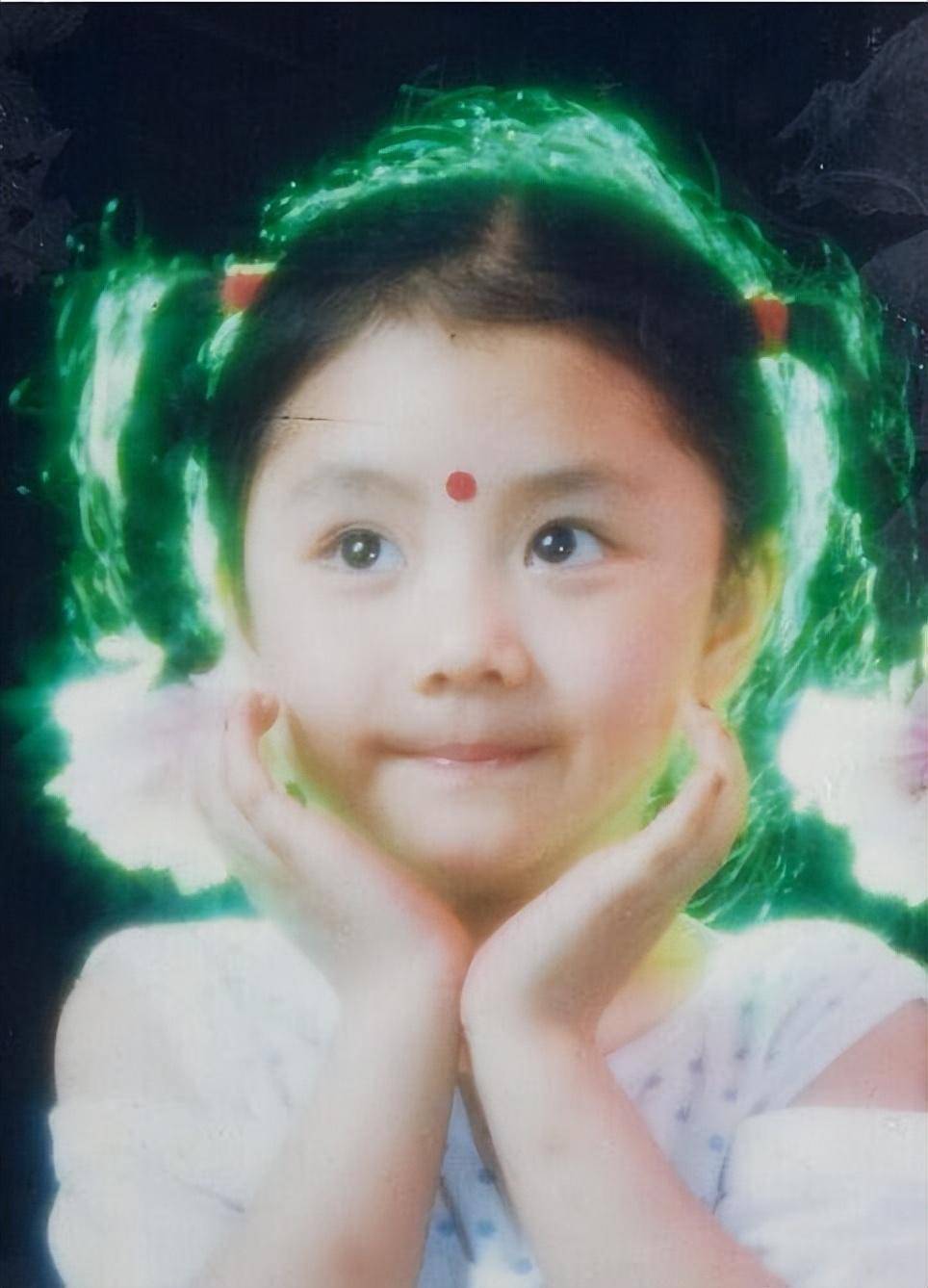 照片里的谭松韵还是个扎着小辫子的小女孩,圆圆的脸蛋肉嘟嘟的,像个精致的芭比娃娃。她的眼睛比现在还要大,长长的睫毛忽闪忽闪,笑起来甜美可爱,即使在没有美颜滤镜的年代,也难掩灵秀之气。